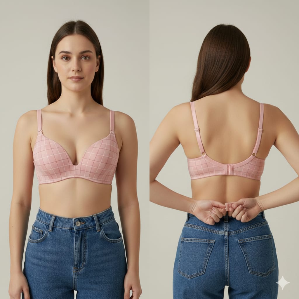 PLAID BRA -low stretchy plaid push up bra, back 3-row hook & eye closure, shoulder straps adjustable, one-piece pads 3/4 cup, breathable polyester material plaid bra.